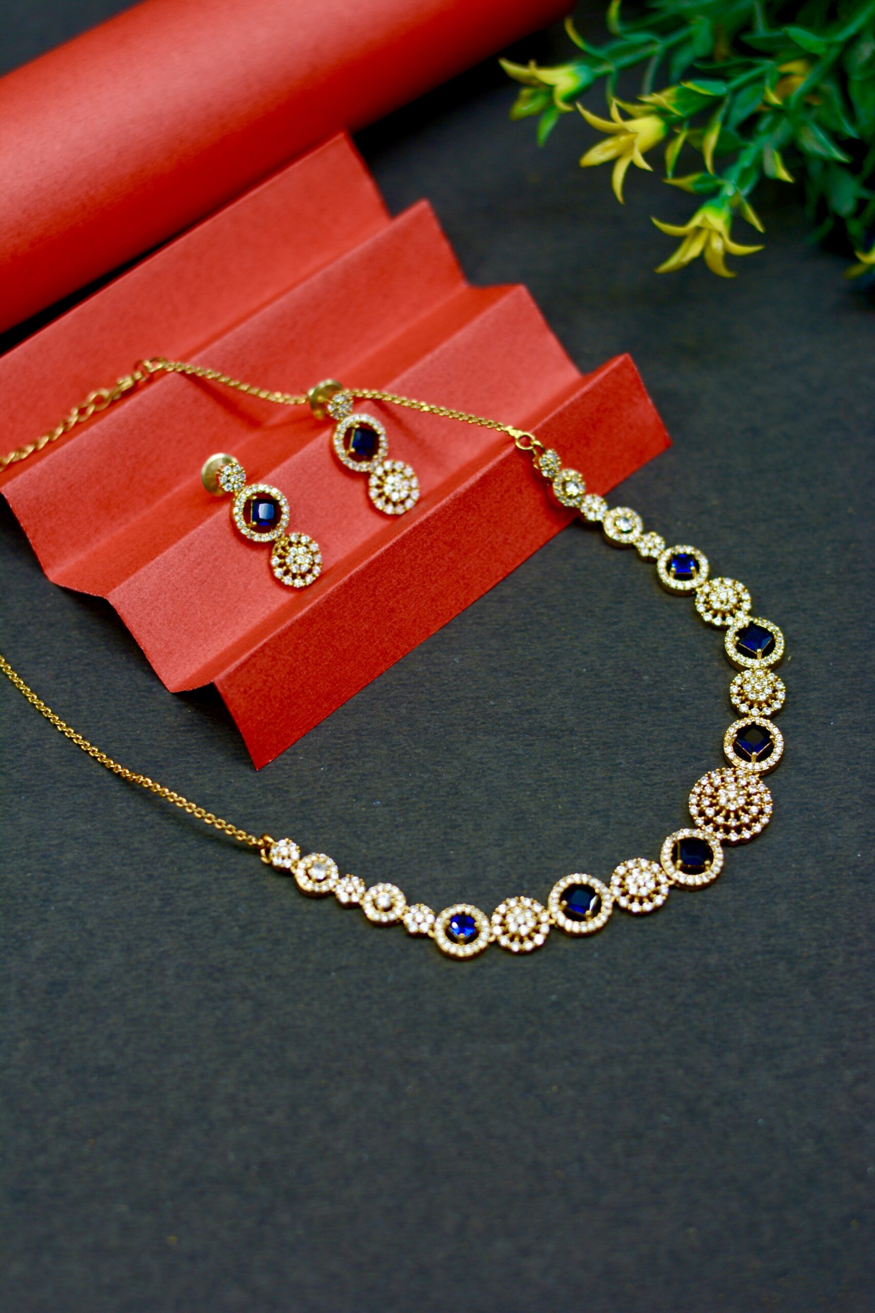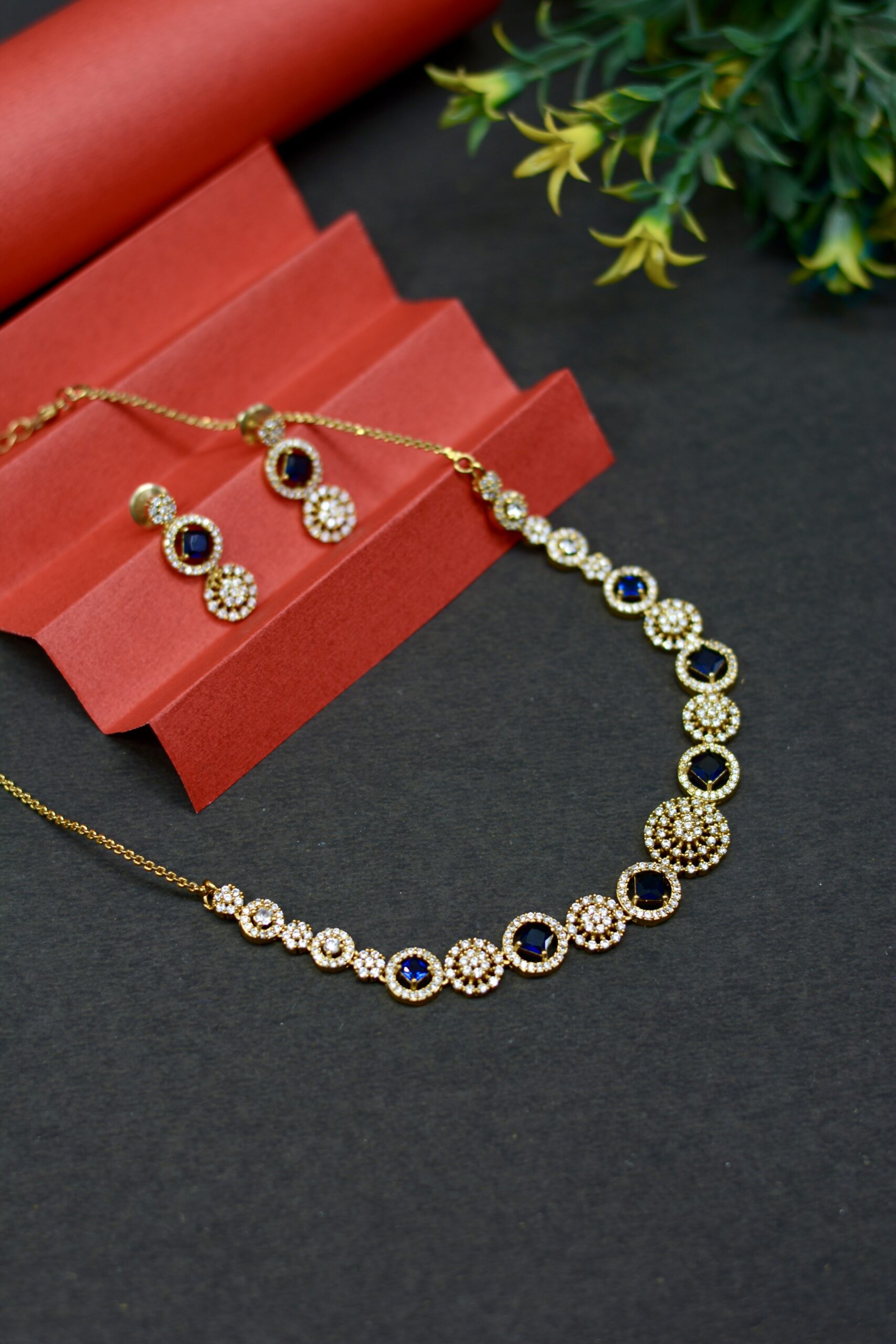 Inspired by traditional diamond motifs, this necklace set delivers timeless elegance with precision detailing and balanced sparkle. The clean design enhances its premium appeal, while the lightweight construction ensures comfort?aking it a perfect everyday-to-occasion piece that blends affordability with refined craftsmanship.