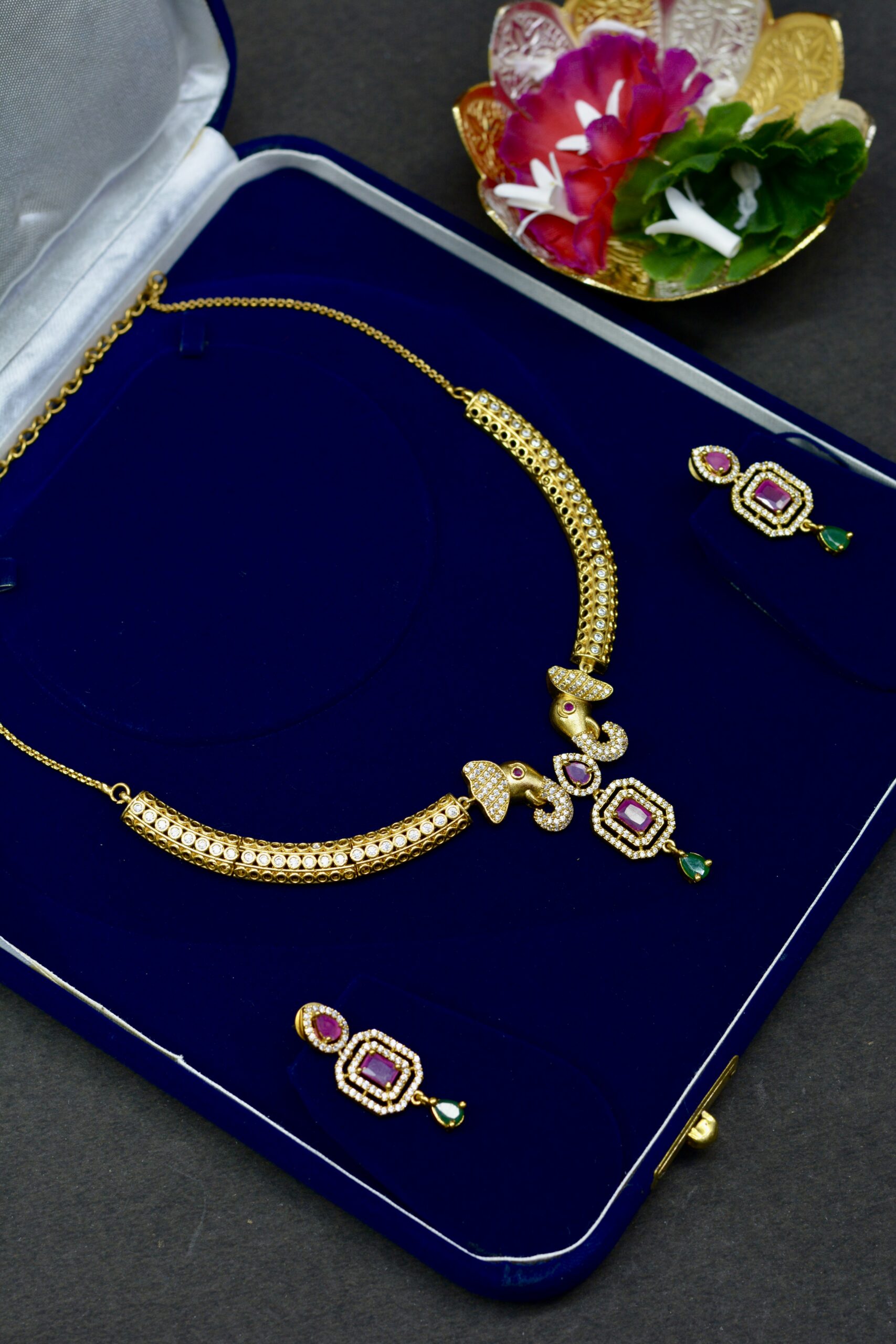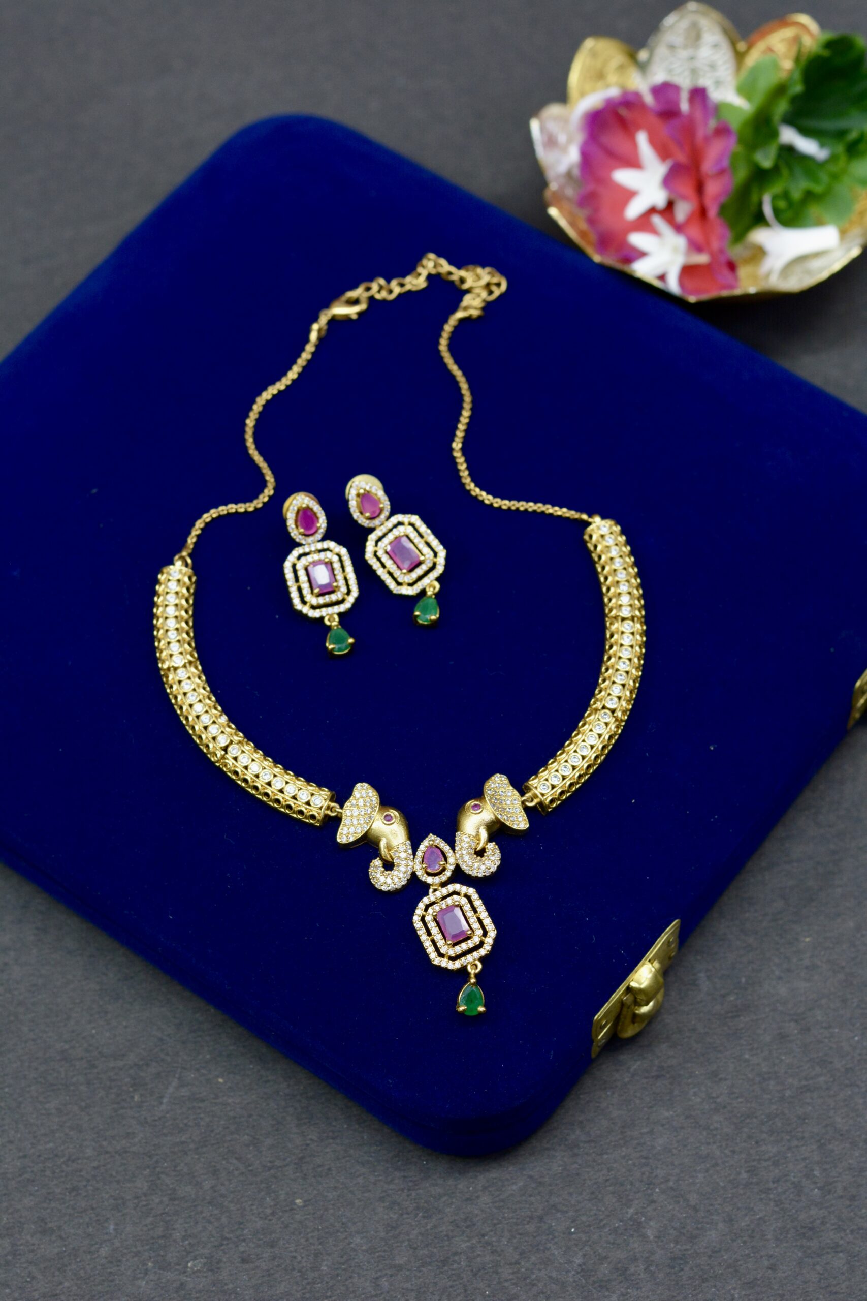 Be the first to review “Elephant Motif Temple Necklace Set” Cancel reply