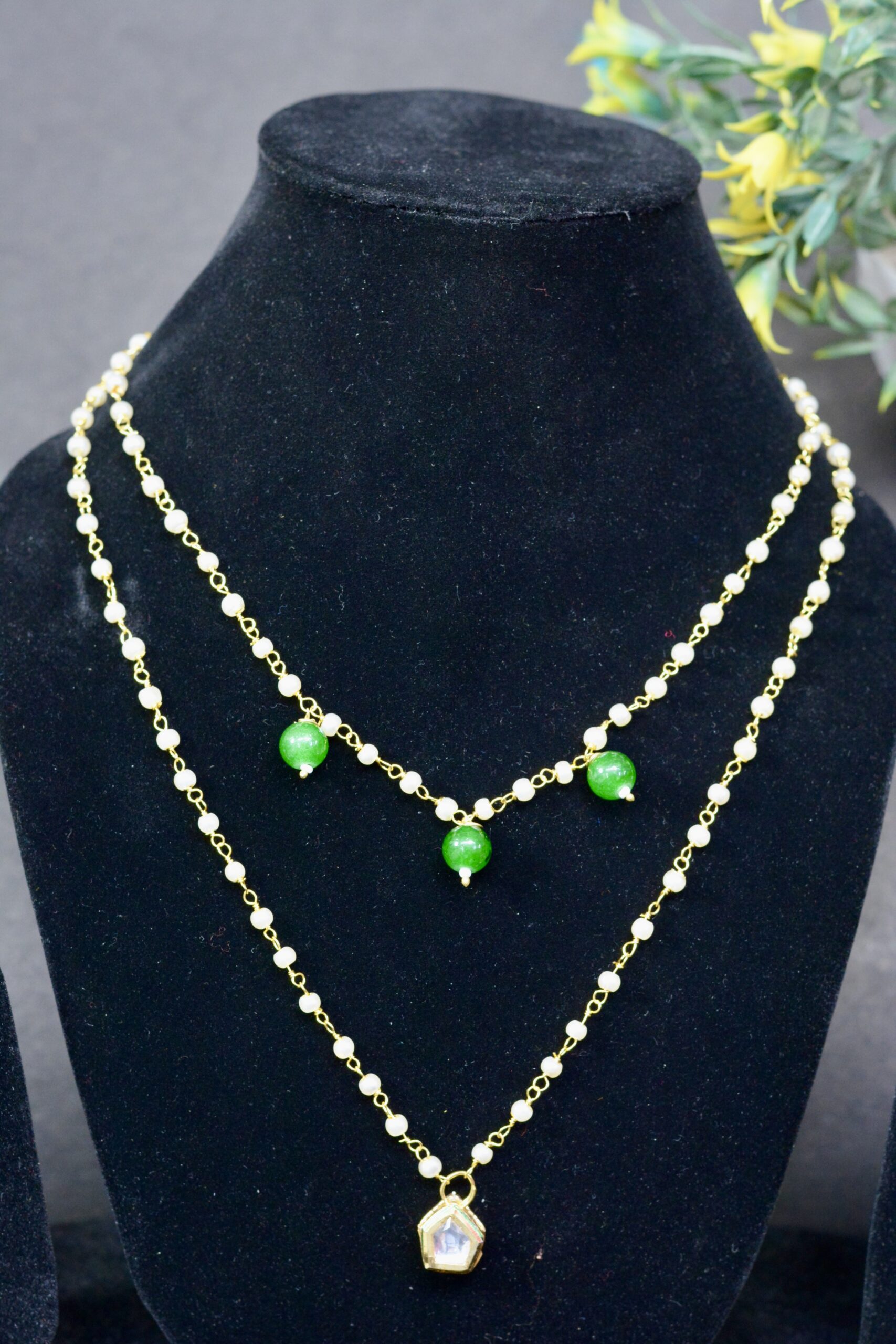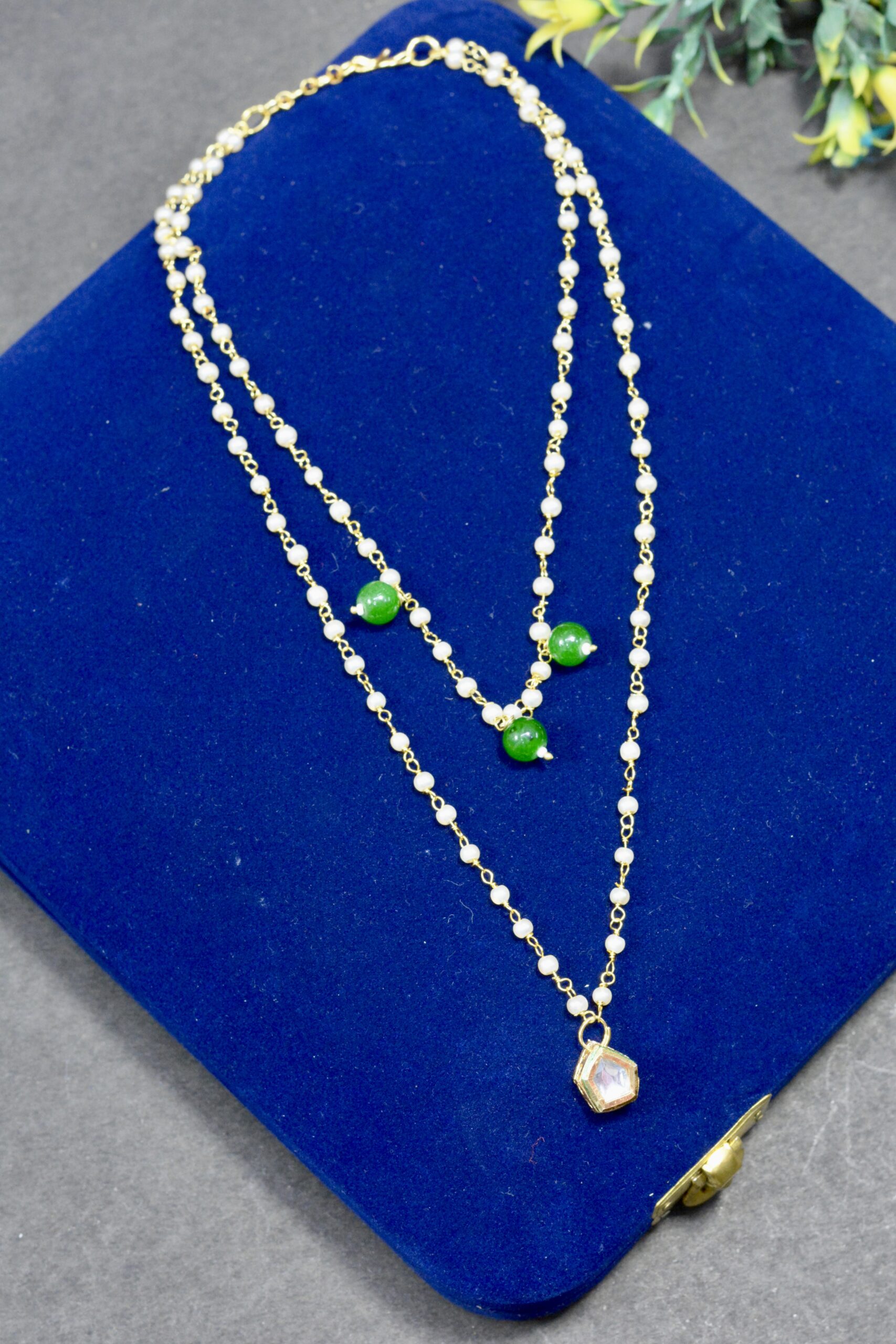 Be the first to review “Minimal Pearl Chain Pendant kundan Necklace” Cancel reply