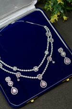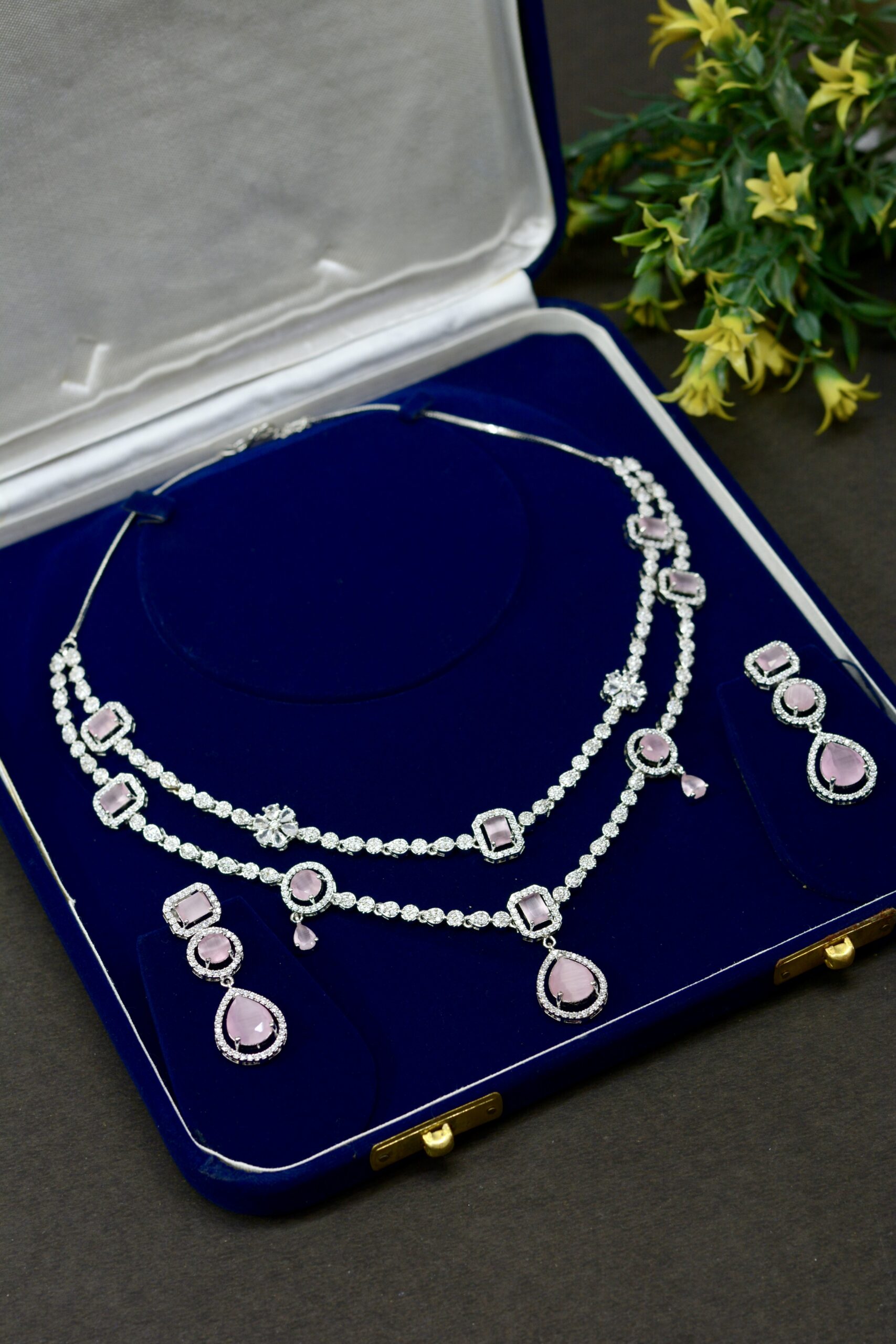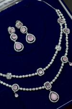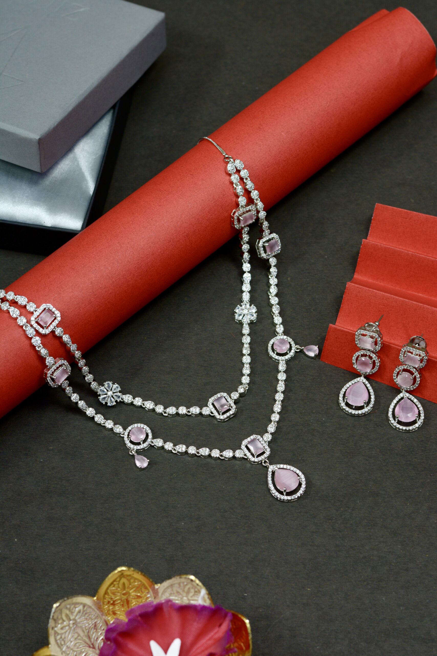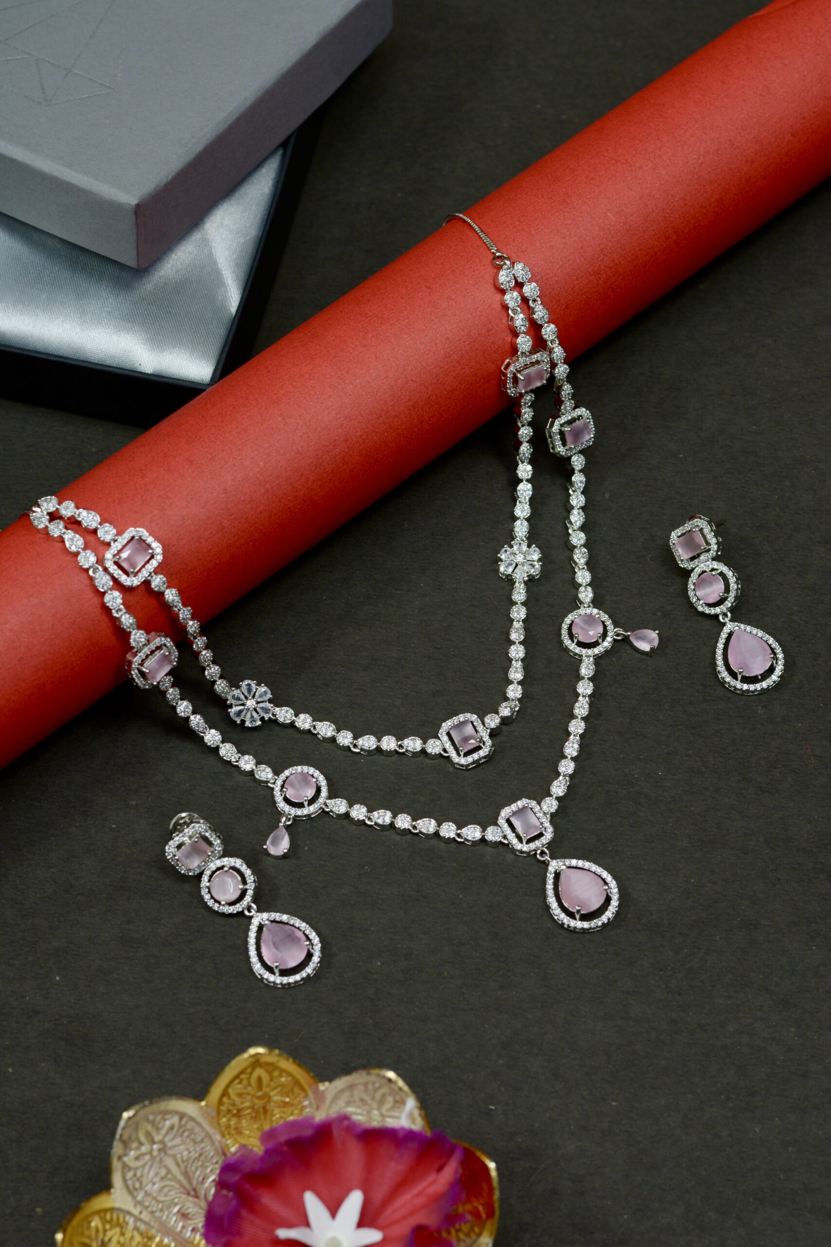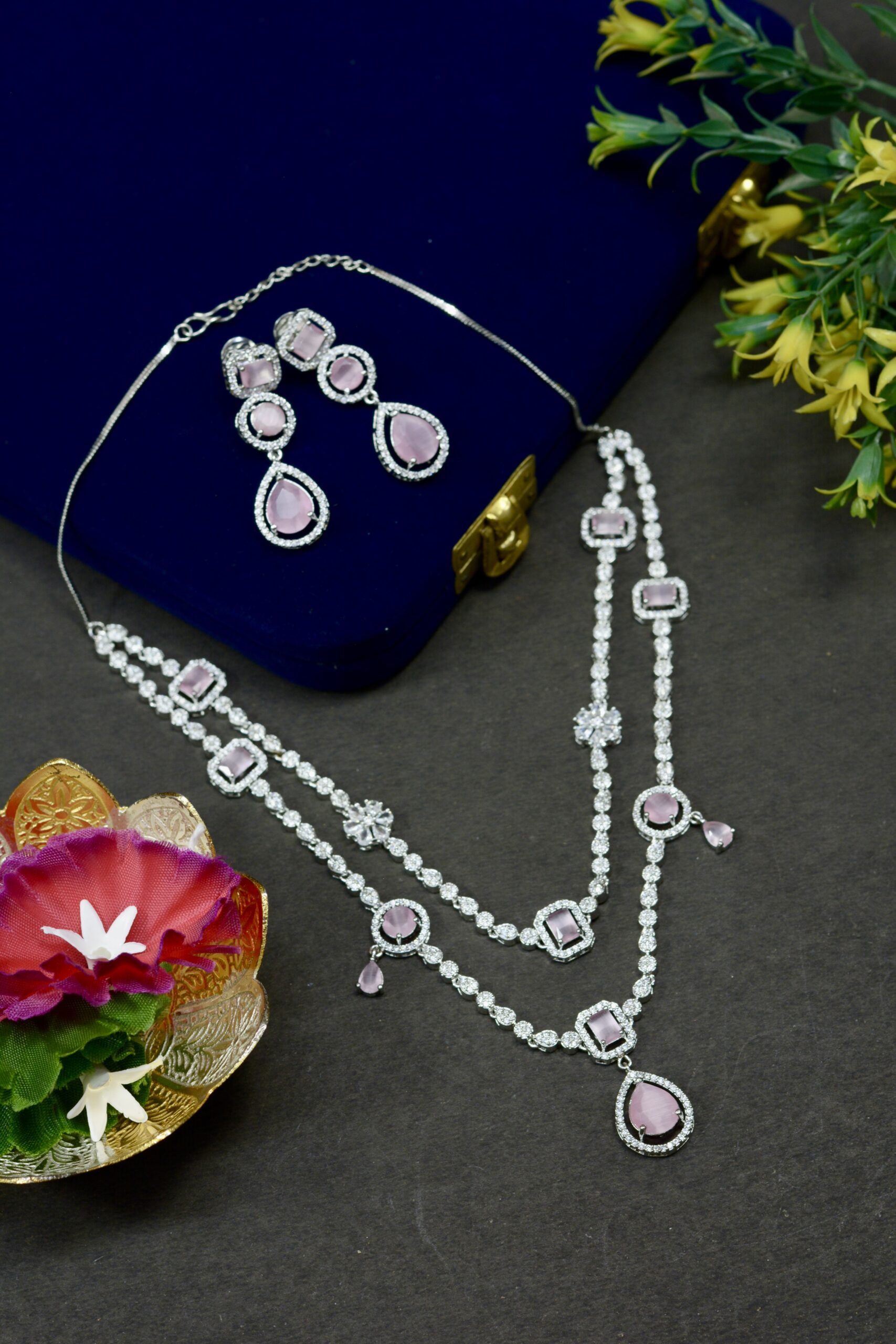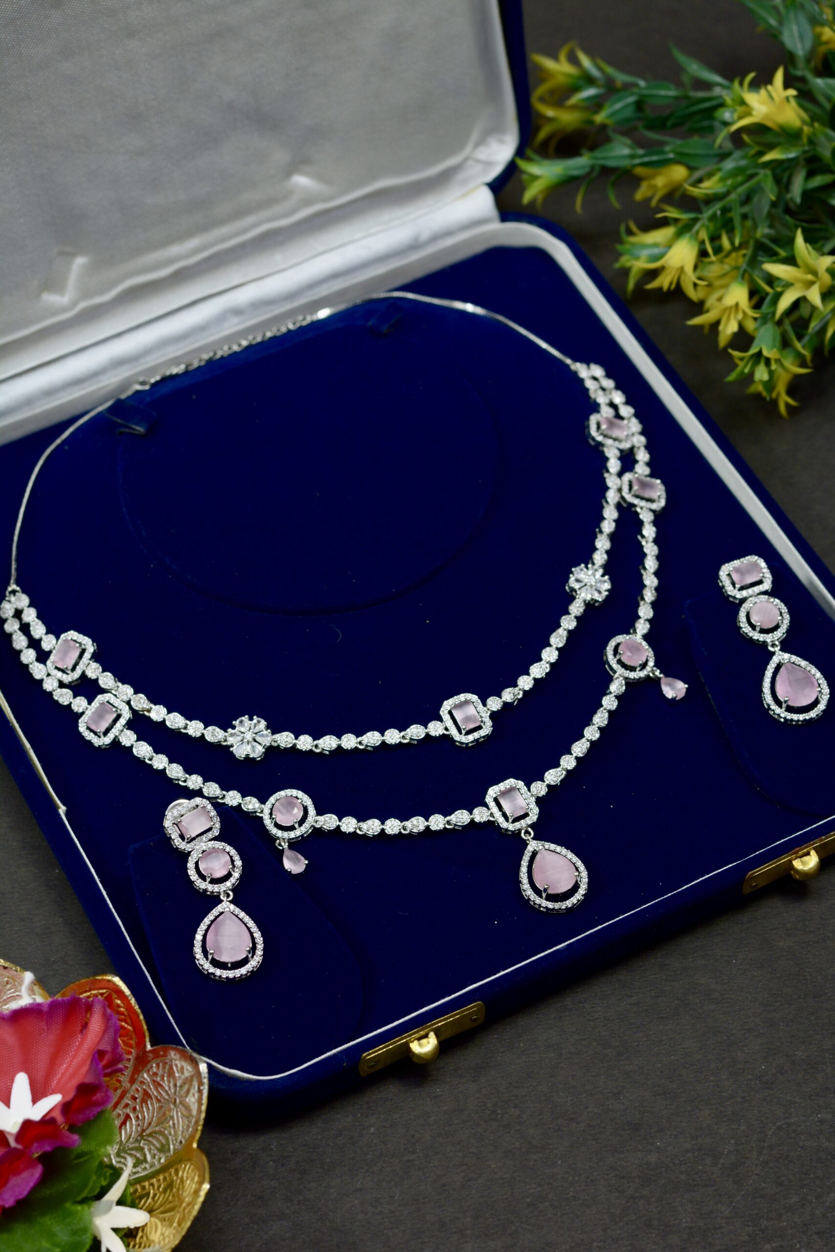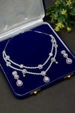 This Pink Stone Layered Necklace Set showcases soft pink stones arranged in graceful layers for added depth and charm. The detailed craftsmanship and radiant finish deliver a premium visual appeal, making it a stylish choice for celebrations, parties, and elegant gifting without compromising on affordability.