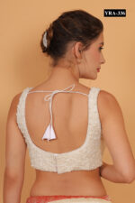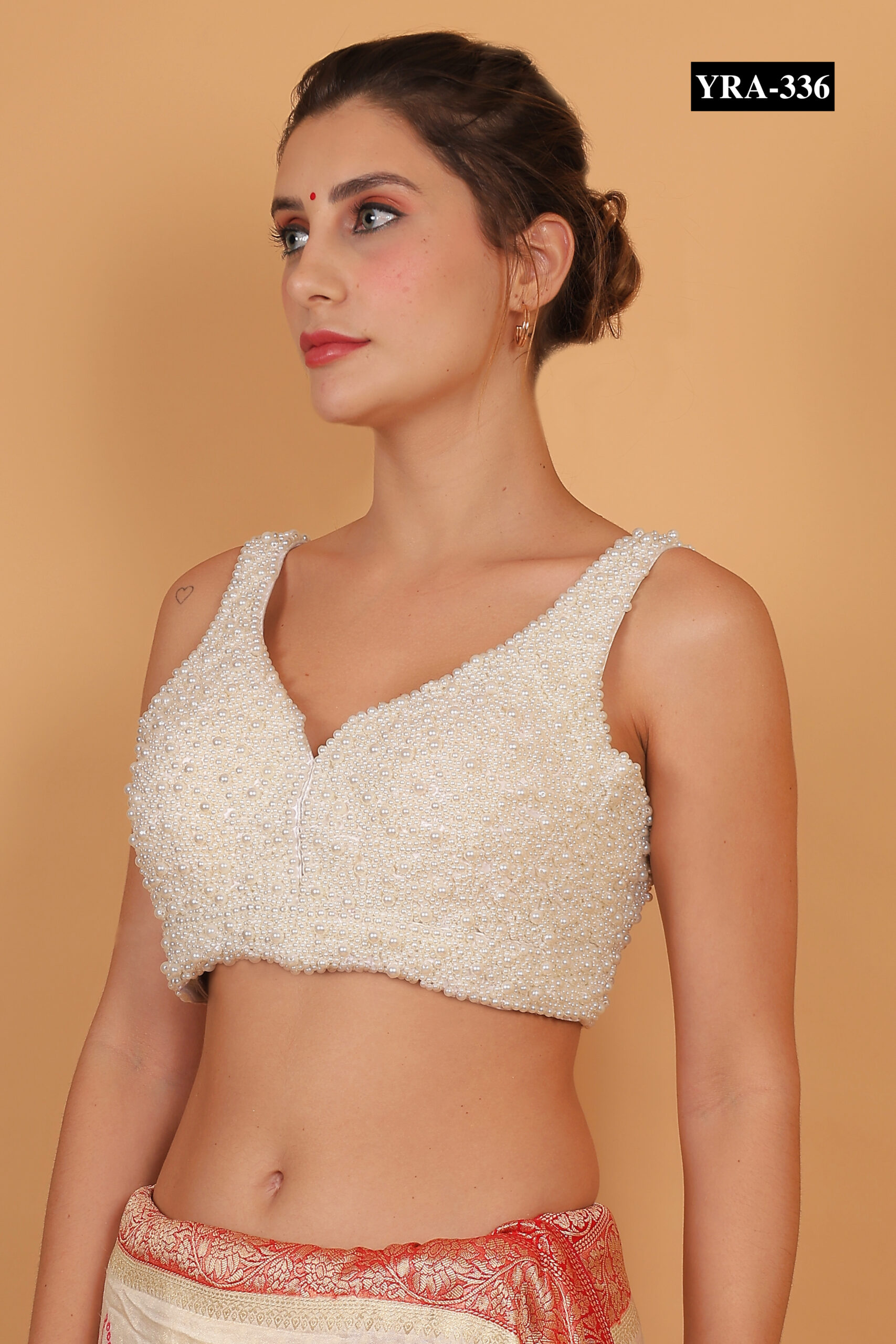 This blouse offers endless styling options. Pair it with pastel or vibrant sarees for a chic, elegant look, or with statement lehengas for a bold fashion statement. The structured fit ensures a polished appearance, while the pearl embellishments catch light beautifully, adding charm and sophistication. Accessorize with gold, silver, or gemstone jewelry for a complete, glamorous ensemble.