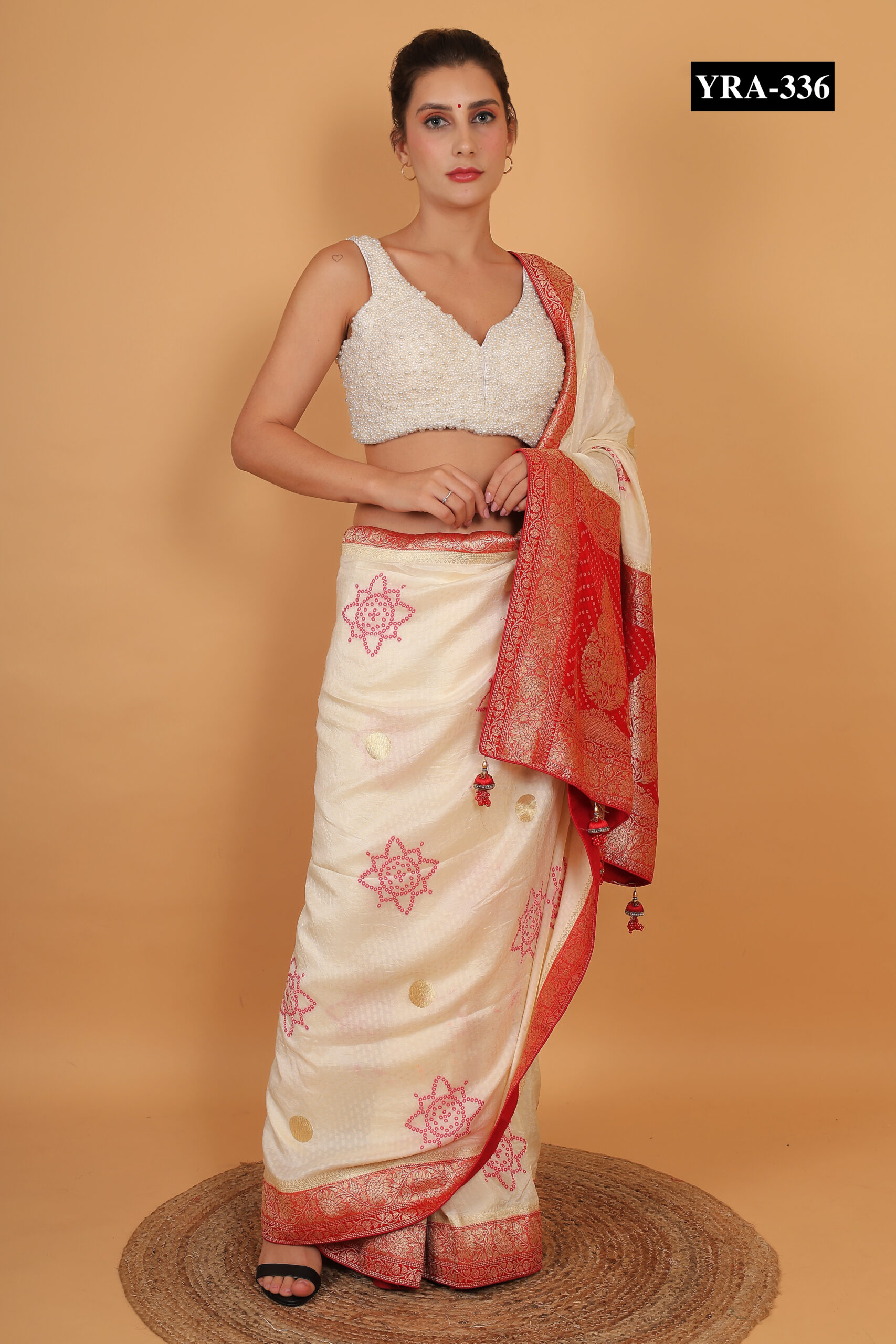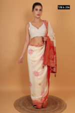 Add a touch of romance to your festive and wedding wardrobe with the Sweetheart Shaped White Pearl Blouse. Its delicate sweetheart neckline creates a flattering silhouette, while the pristine white fabric serves as a perfect backdrop for elegant pearl embellishments. This blouse combines sophistication, style, and comfort, making it ideal for weddings, parties, and special occasions.