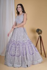 This mauve embroidered lehenga choli not only elevates your look but also ensures comfort throughout long celebrations. The soft, breathable fabric allows easy movement, while the contemporary design ensures a flattering silhouette. Transitioning smoothly from day functions to evening receptions, it gives you effortless elegance at every step.